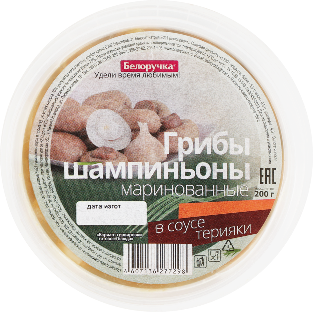 Грибы шампиньоны маринованные в соусе терияки, 200г, пласт.упаковка
